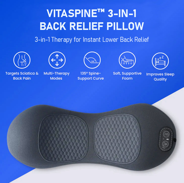 Upgrade your everyday comfort with VitaSpine™, an advanced 3-in-1 back relief system designed to support real at-home recovery. By combining soothing heat therapy, targeted vibration massage, and spinal traction support, it helps ease tension, improve mobility, and deliver a deeper sense of lasting relief. More than just another pillow, VitaSpine™ is made for people who want a smarter, more effective way to care for their back and enjoy greater freedom in daily life.